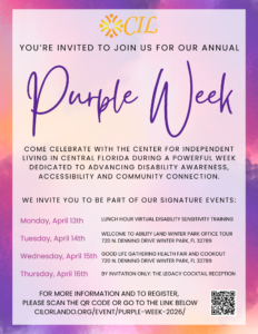 Join the Center for Independent Living in Central Florida for Purple Week 2026, a powerful week dedicated to advancing disability awareness, accessibility, and community connection.